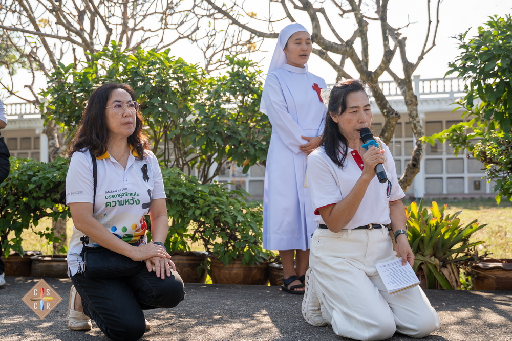 2. สวดสายประคำ ที่บริเวณหน้าถ้าแม่พระ โดยมีจุดประสงค์การภาวนาเพื่อสันติภาพ