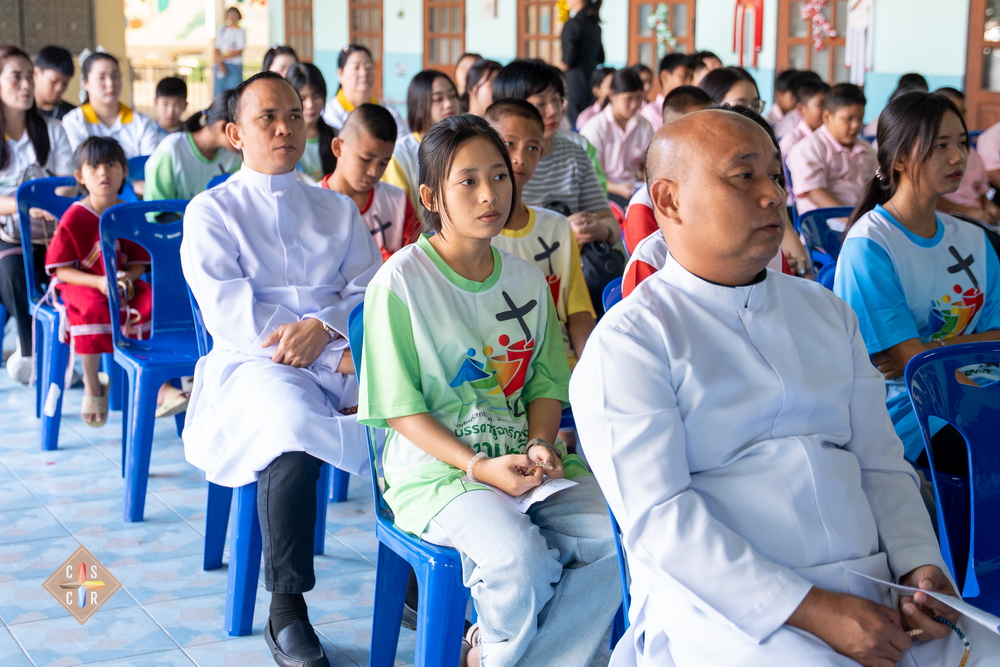 4. สวดสายประคำธรรมทูต ณ ศาลาแผนกอนุบาล โดยมีจุดประสงค์การภาวนาเพื่อการประกาศข่าวดี