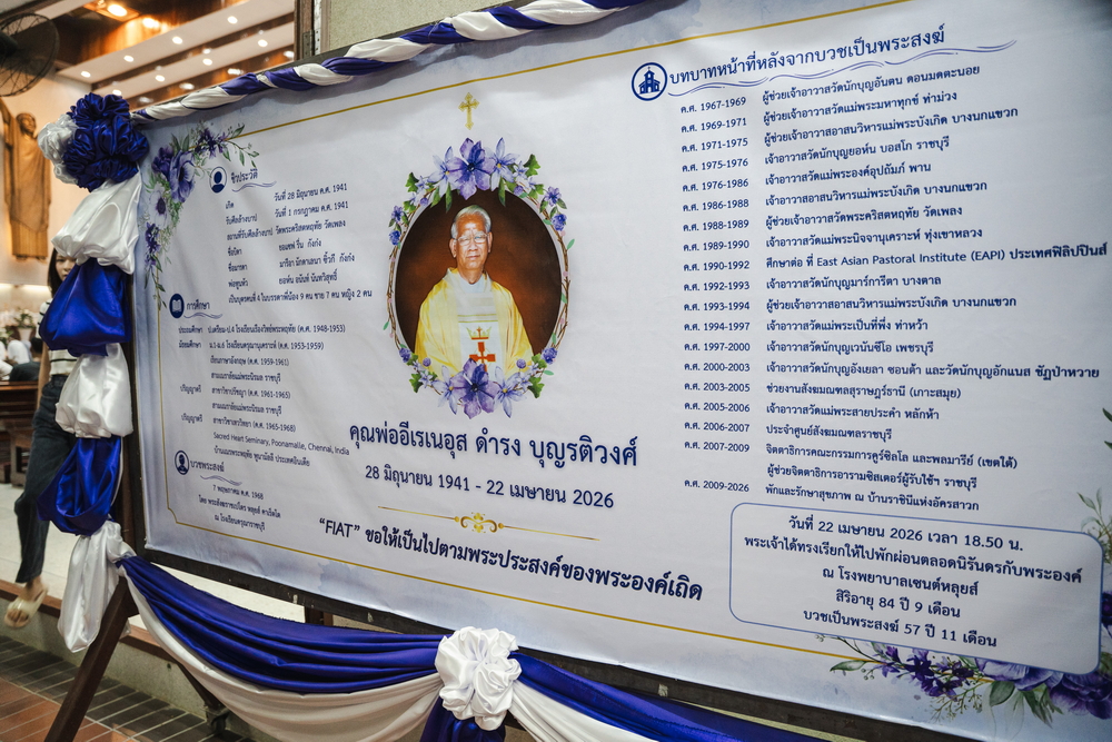 วันพฤหัสบดีที่ 23 เมษายน 2026 เวลา 10.30 น. คุณพ่อเสนอ ดำเนินสดวก อุปสังฆราช พร้อมด้วยคณะสงฆ์ ซิสเตอร์ บราเดอร์ ญาติพี่น้องและคณะครู ร่วมต้อนรับร่างของคุณพ่ออีเรเนอุส ดำรง บุญรติวงศ์ สู่วัดนักบุญยอห์น บอสโก ราชบุรี