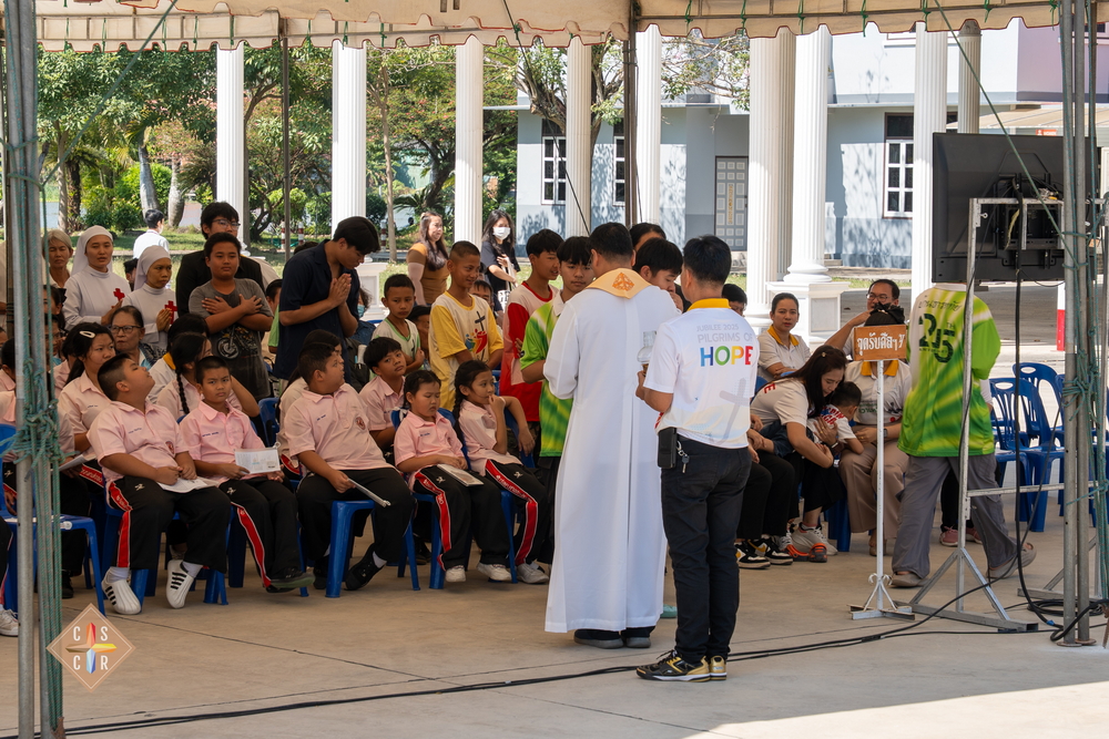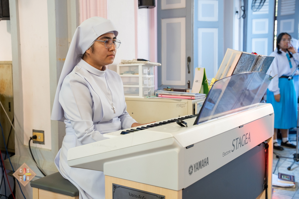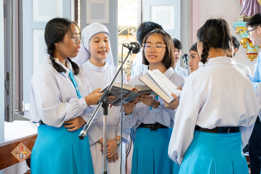 4. สวดสายประคำธรรมทูต ณ ศาลาแผนกอนุบาล โดยมีจุดประสงค์การภาวนาเพื่อการประกาศข่าวดี