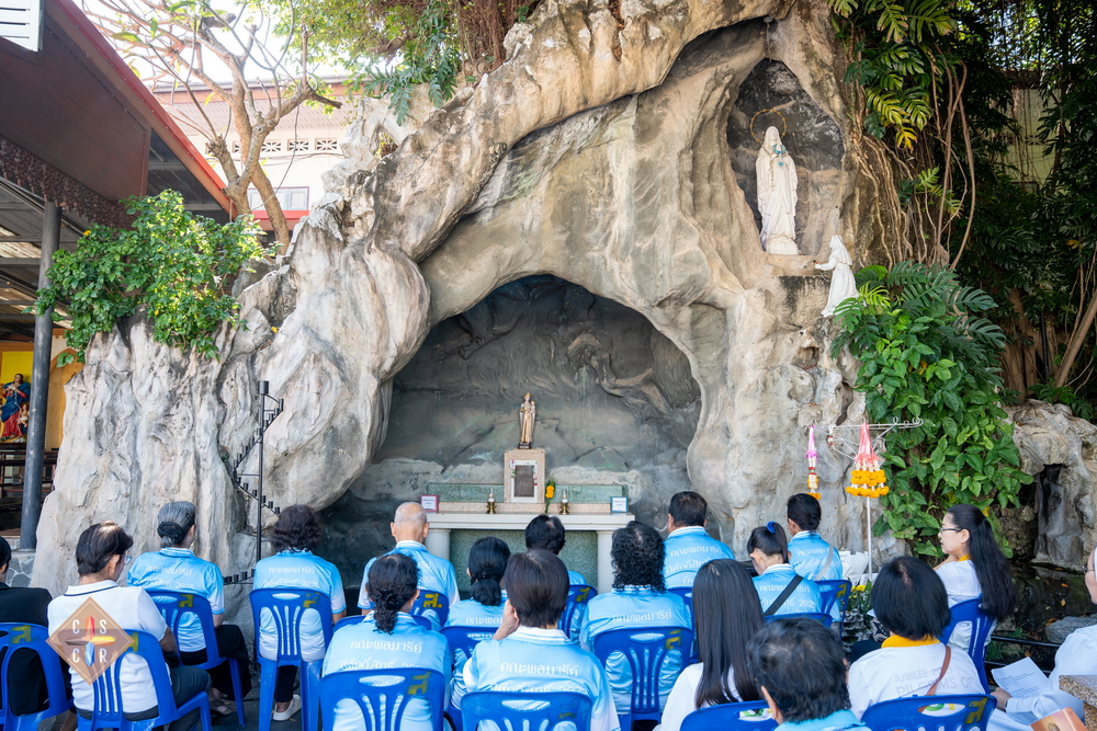 2. สวดสายประคำ ที่บริเวณหน้าถ้าแม่พระ โดยมีจุดประสงค์การภาวนาเพื่อสันติภาพ